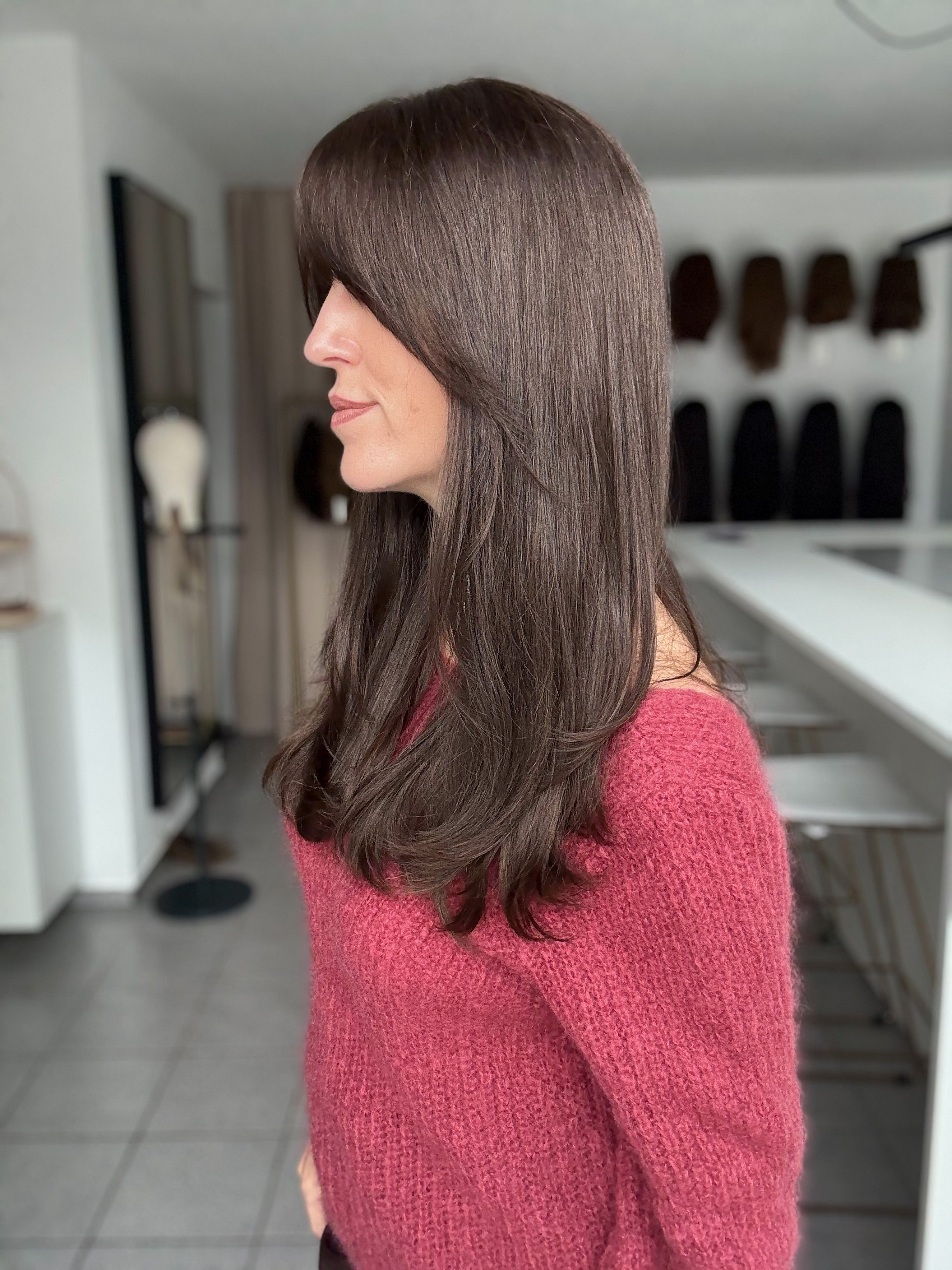 - Schnitt: leicht angestuft, leichtes Faceframing, Longpony