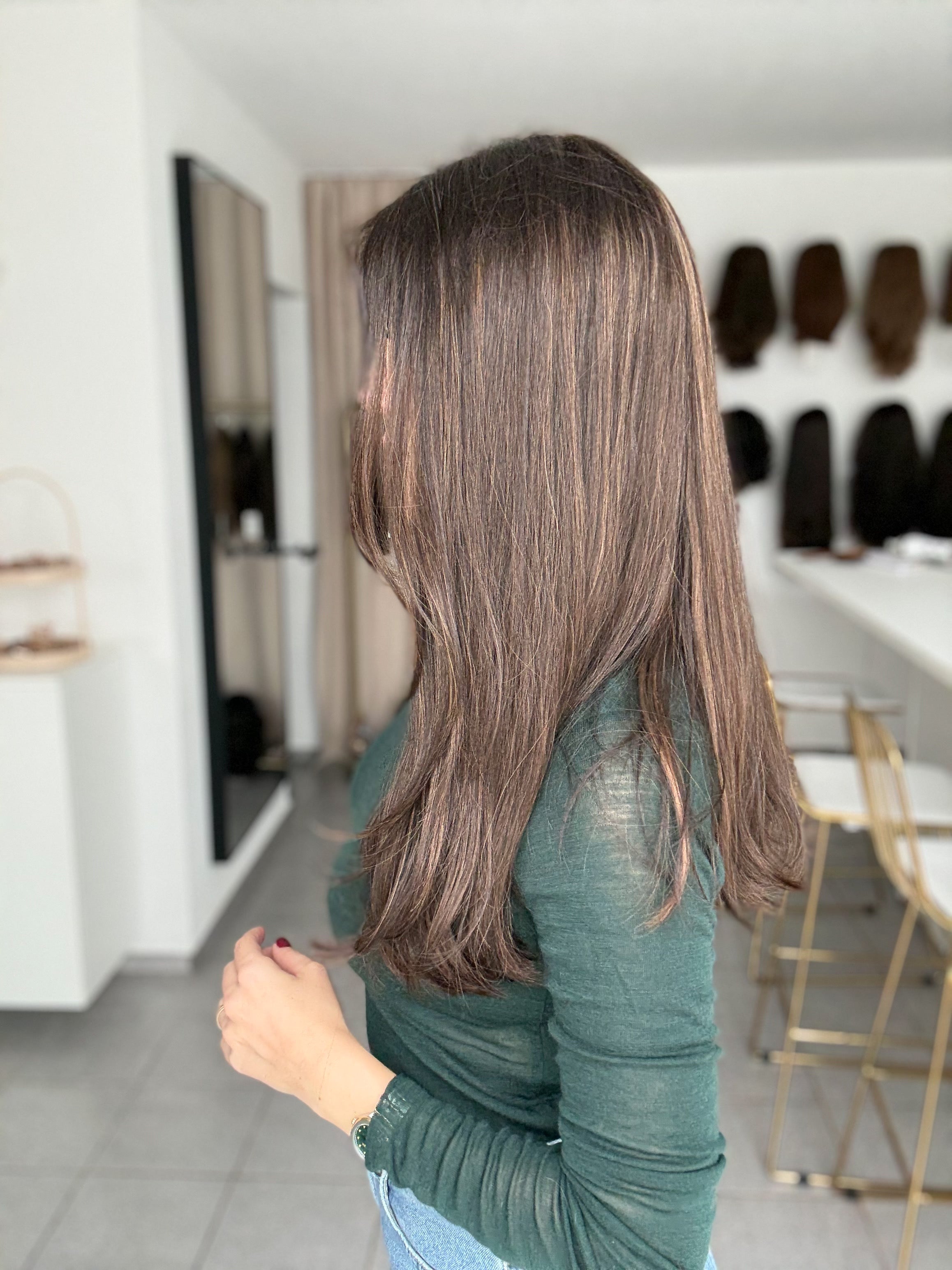 - Farbe: slawisches natürliches, vollkommen unbehandeltes Dunkelbraun mit feinen colorierten Highlights