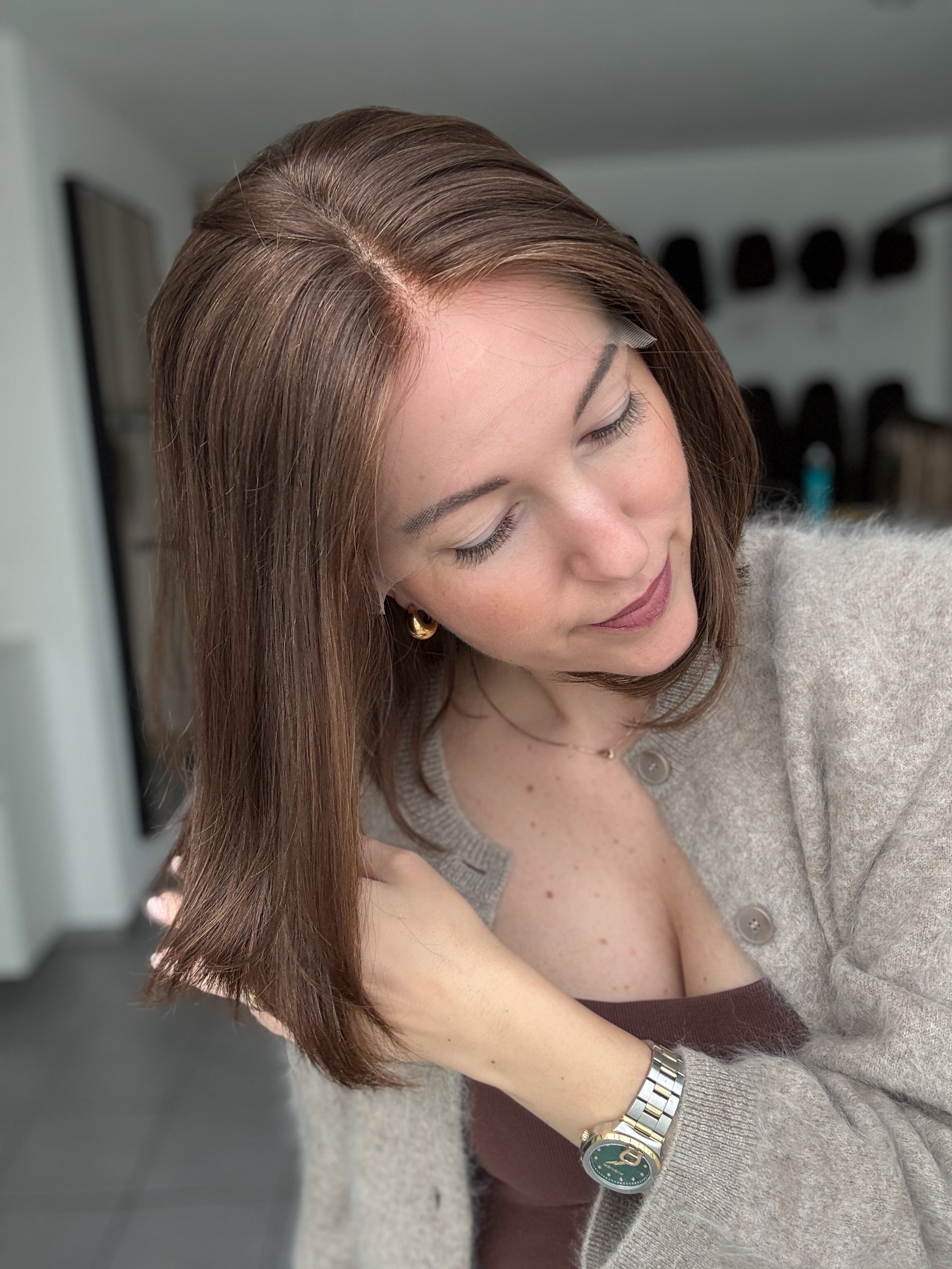 • extrem realistische Lacefront mit frei beweglichem Scheitel