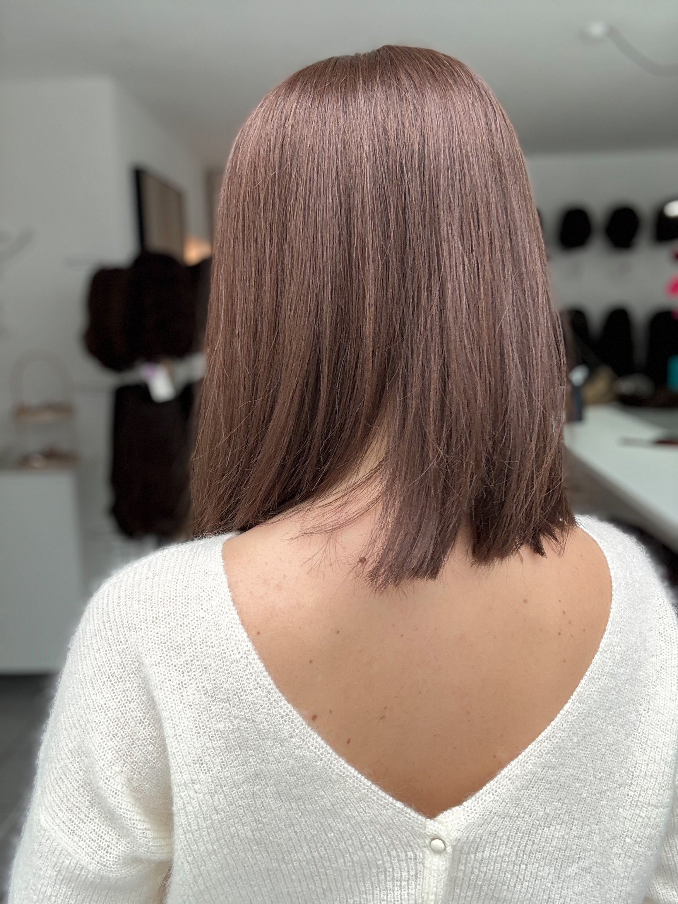 Abhängig von deinem Haarschnitt kann es sinnvoll sein, den Topper von deinem Friseur professionell anpassen zu lassen. So wird ein nahtloser und natürlicher Übergang gewährleistet, der das Gesamtbild harmonisch wirken lässt.