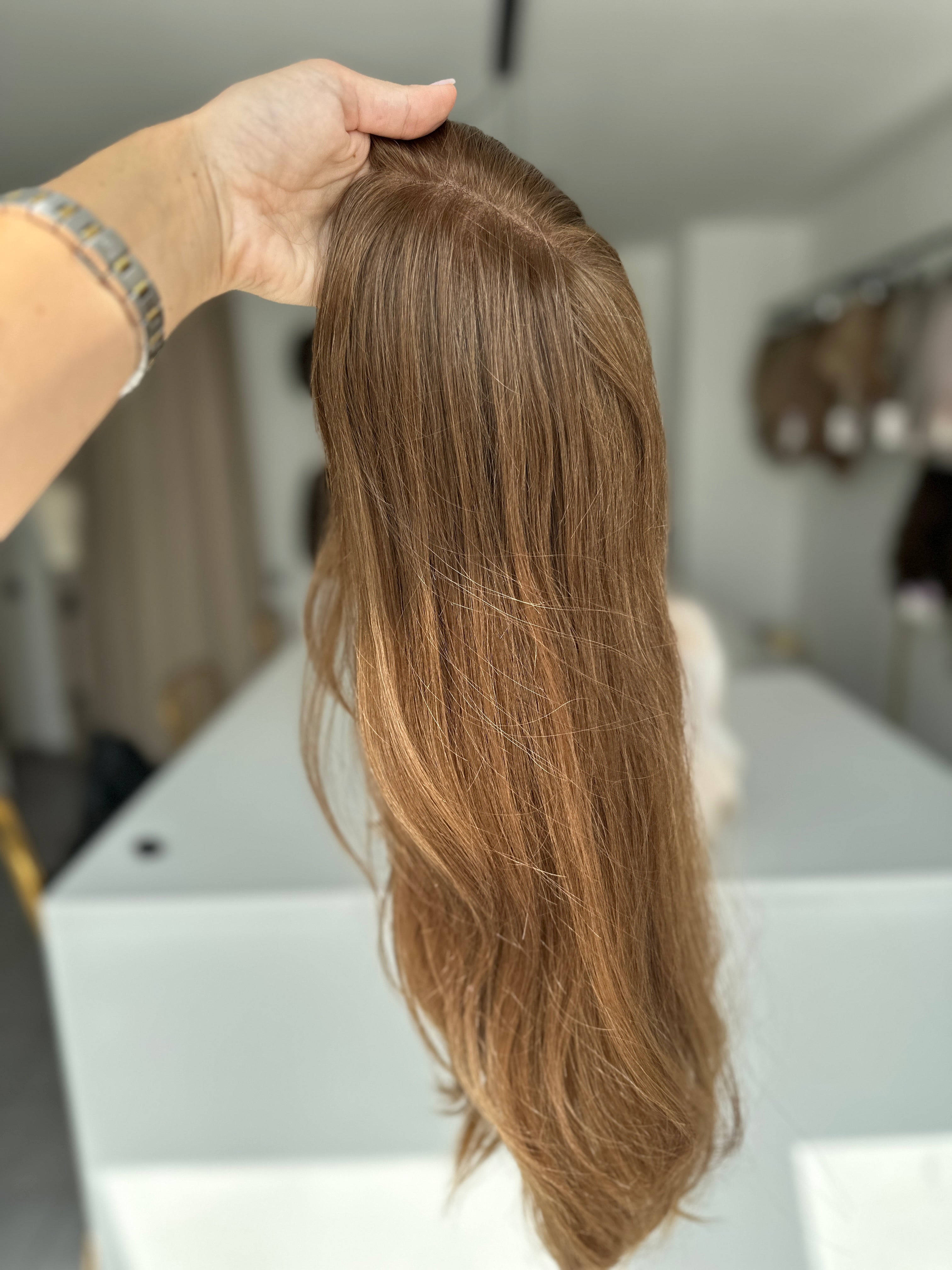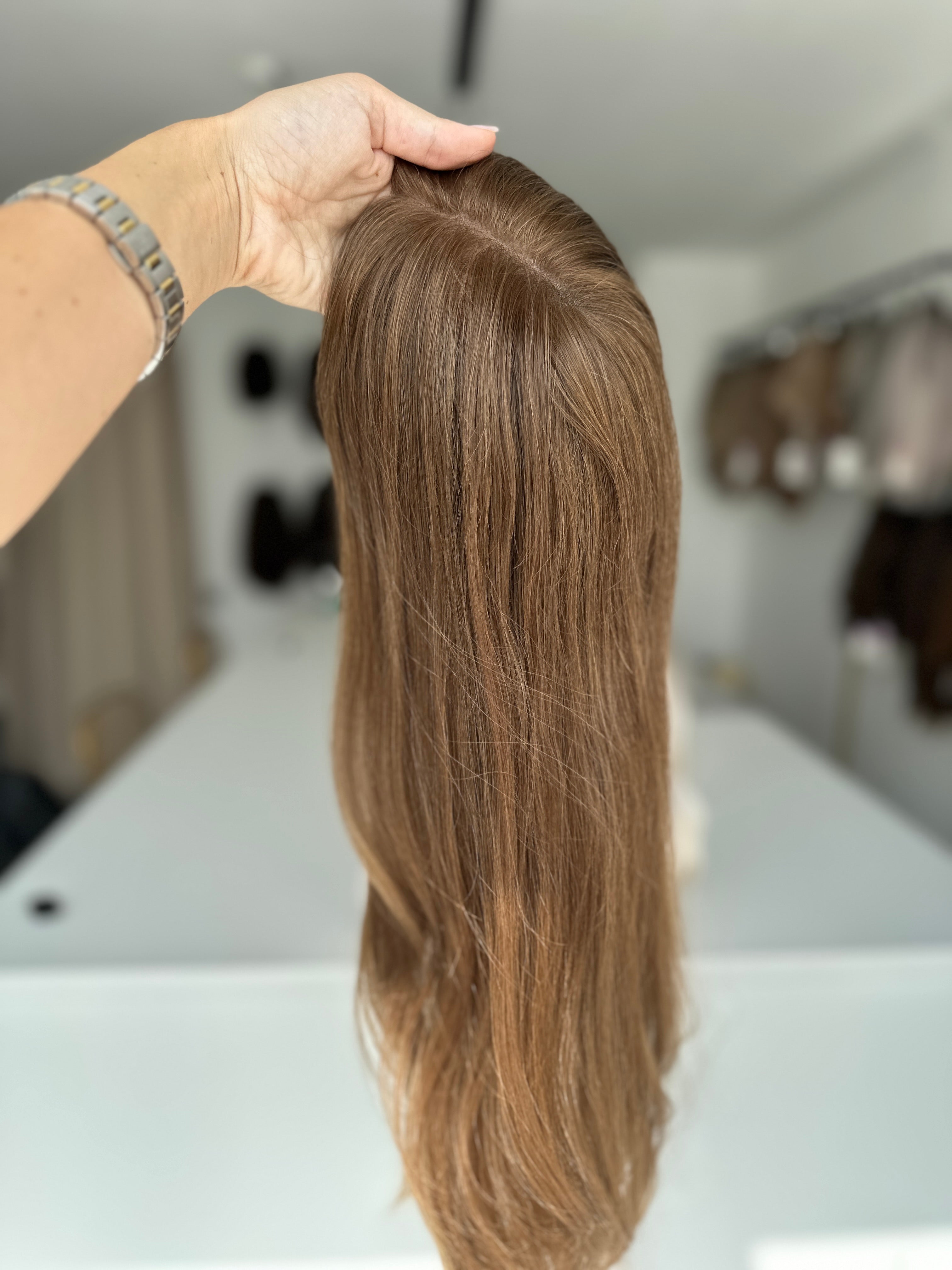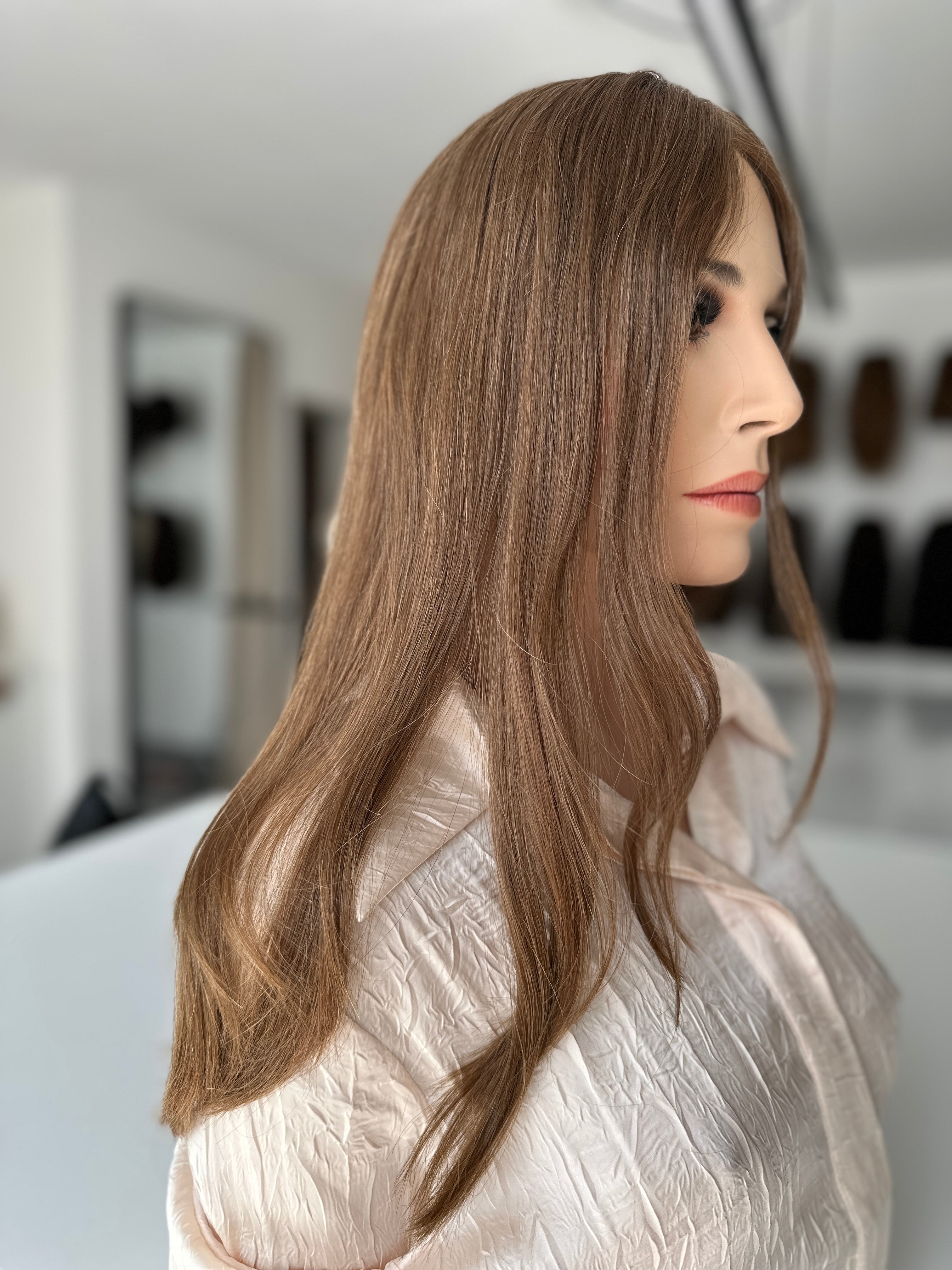 Abhängig von deinem Haarschnitt kann es sinnvoll sein, den Topper von deinem Friseur professionell anpassen zu lassen. So wird ein nahtloser und natürlicher Übergang gewährleistet, der das Gesamtbild harmonisch wirken lässt.