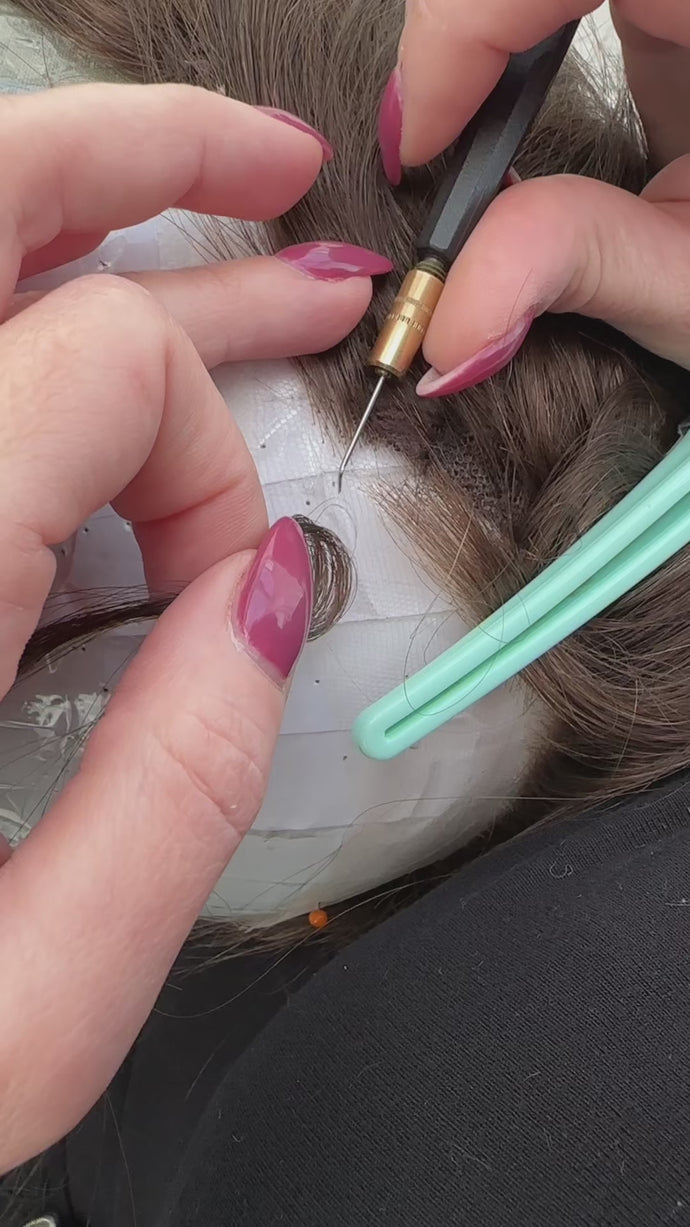 Jede Perücke durchläuft zahlreiche, aufeinander abgestimmte Arbeitsschritte, die bewusst von unserem kleinen, spezialisierten Team ausgeführt werden. Besonders sensiblen Bereichen widmen wir höchste Aufmerksamkeit: Die komplette Haarfront wird in präziser Handarbeit neu geknüpft, die Knoten sorgfältig gebleicht, um maximale Unsichtbarkeit zu erzielen. Die Kappe wird in ihrer Verarbeitung verfeinert, Dichte und Fall werden durch das gezielte Entfernen oder Ergänzen von Tressen optimiert. Anschließend folgen der individuelle Schnitt sowie das finale Styling – stets abgestimmt auf Struktur, Bewegung und die natürliche Dynamik des Haares.