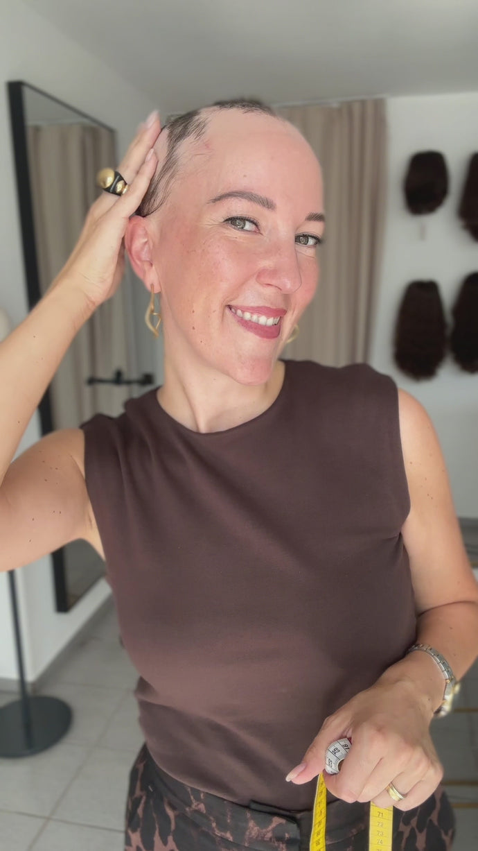 Damit deine Perücke perfekt sitzt, ist das richtige Maßnehmen essenziell. Wir haben einen Schritt-für-Schritt-Guide bzw. Video, das dir dabei helfen wird. Du kannst uns deine Maße per E-Mail an info@boldhair.eu senden, und wir helfen dir, die passende Perückenkappe zu finden.