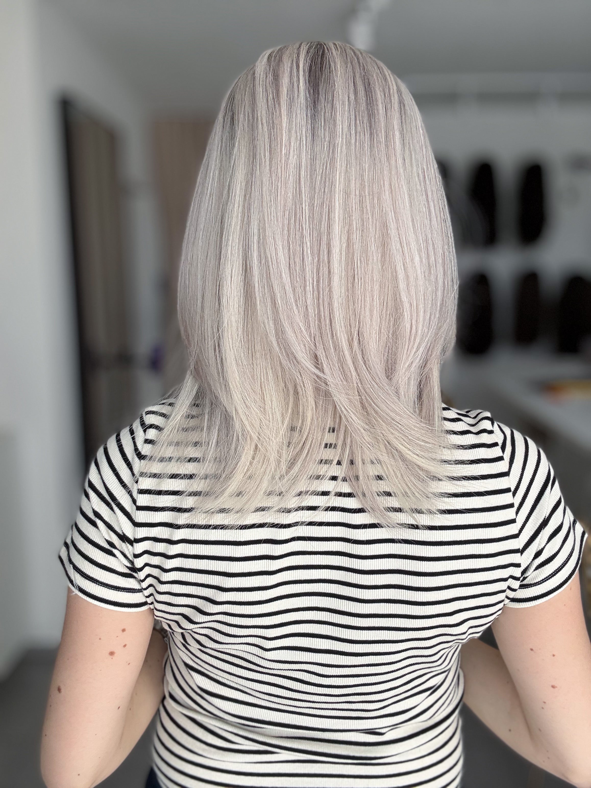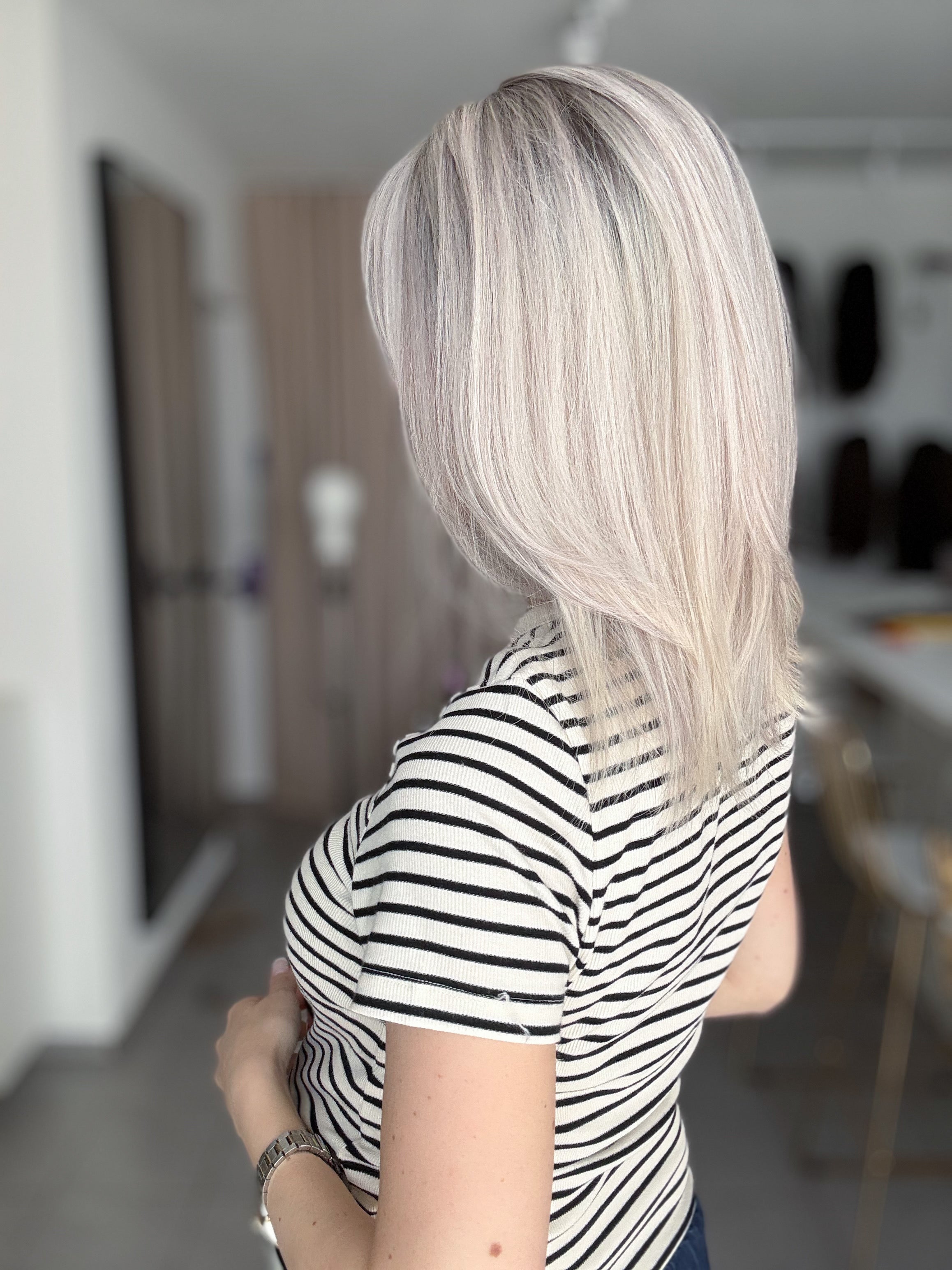 - Farbe: helles Silberblond mit leichtem Shadowrooting