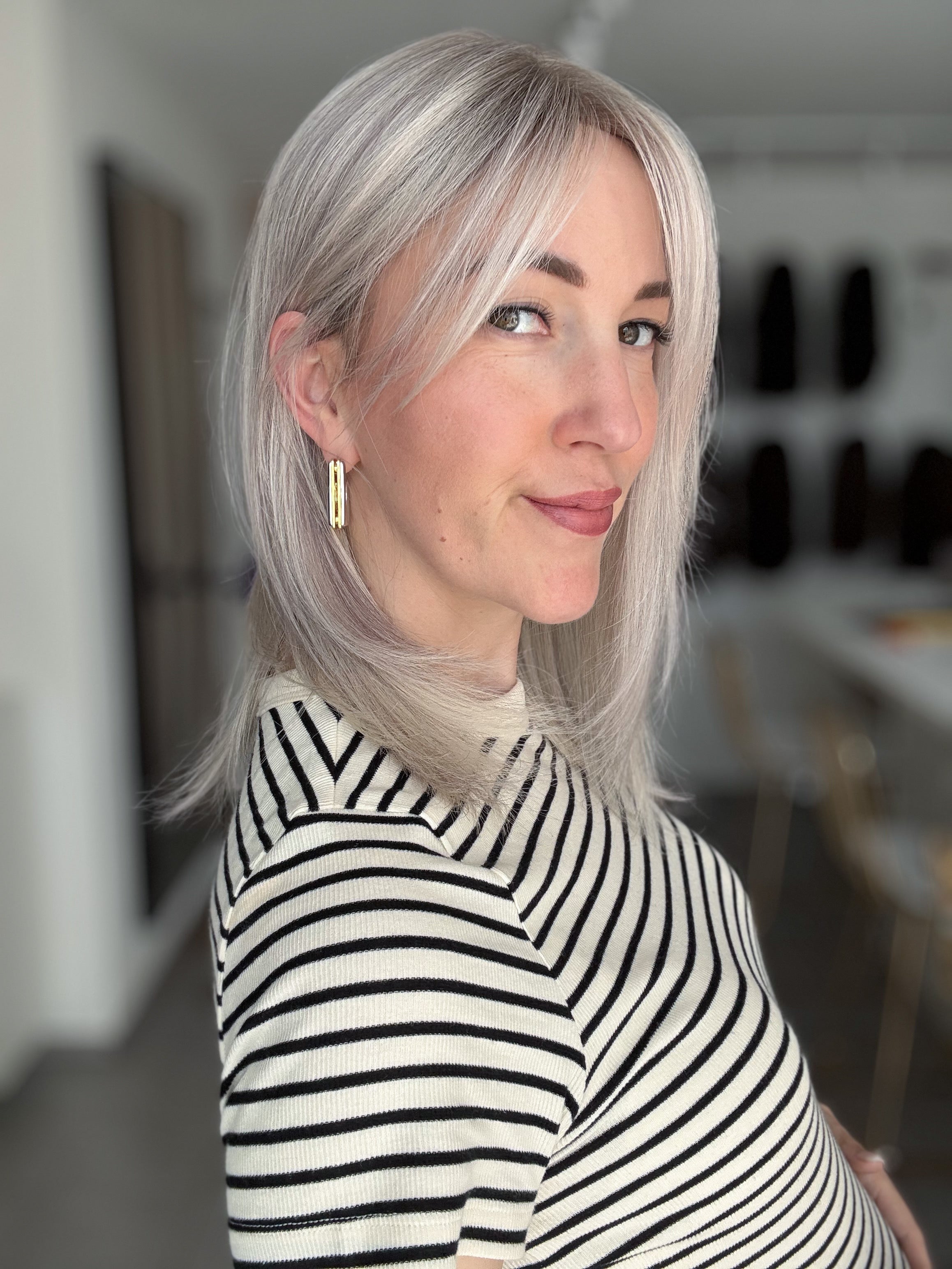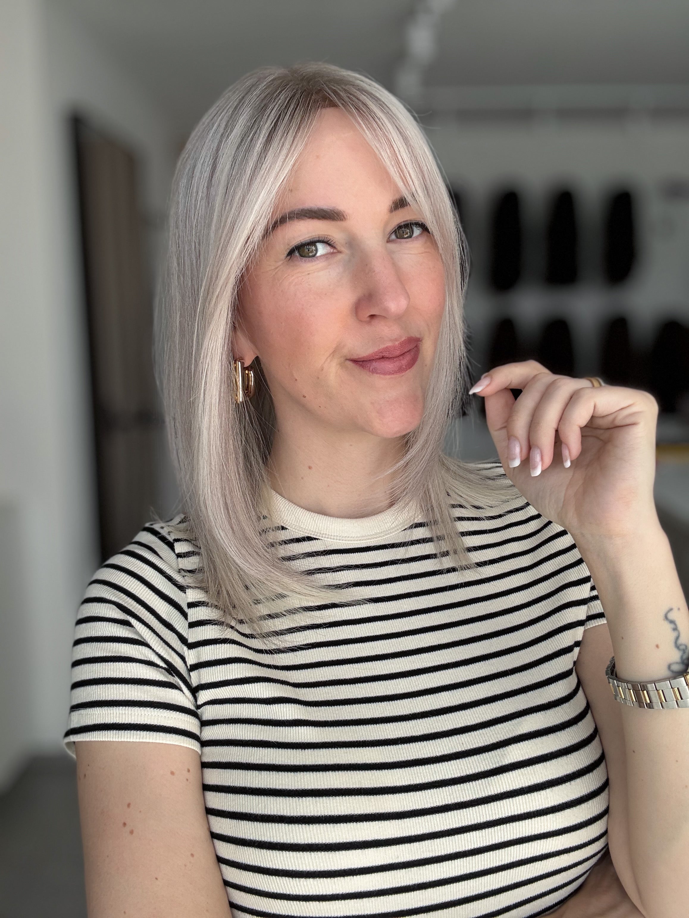 Bei Modellen mit dunklerem Ansatz kann es zudem super stimmig wirken, wenn die Farbe deines Eigenhaars dem Ton des Ansatzes ähnelt. Dadurch entsteht ein natürlicher Übergang, der das Gesamtbild noch harmonischer erscheinen lässt.
