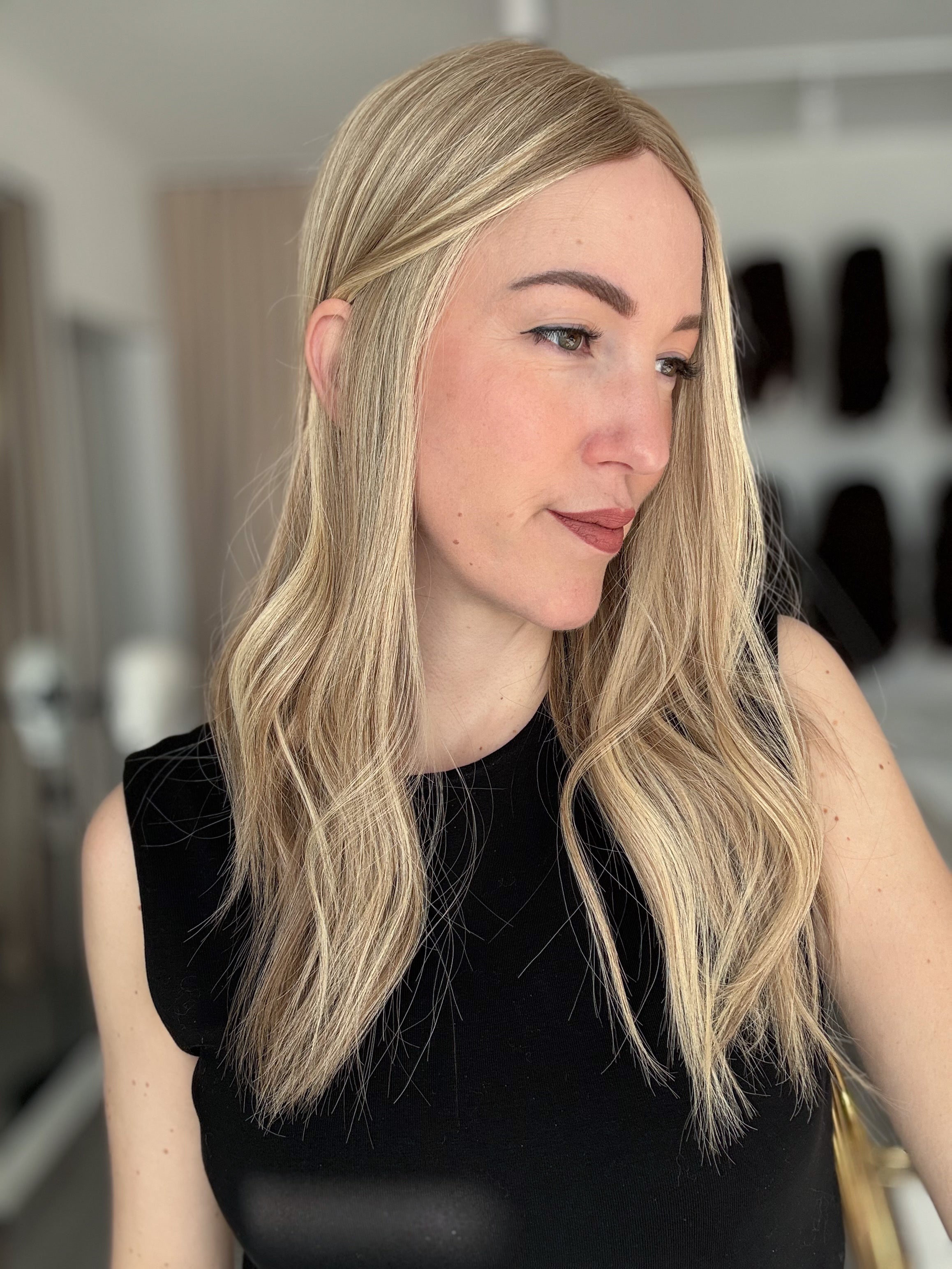 Es ist wichtig, einen Topper in einer Farbe auszuwählen, die gut zu deinem eigenen Haar passt, um ein harmonisches Gesamtbild zu erzielen. Doch vergiss nicht: Dein Eigenhaar kann ebenfalls farblich angepasst werden, um perfekt mit dem Topper zu harmonieren.