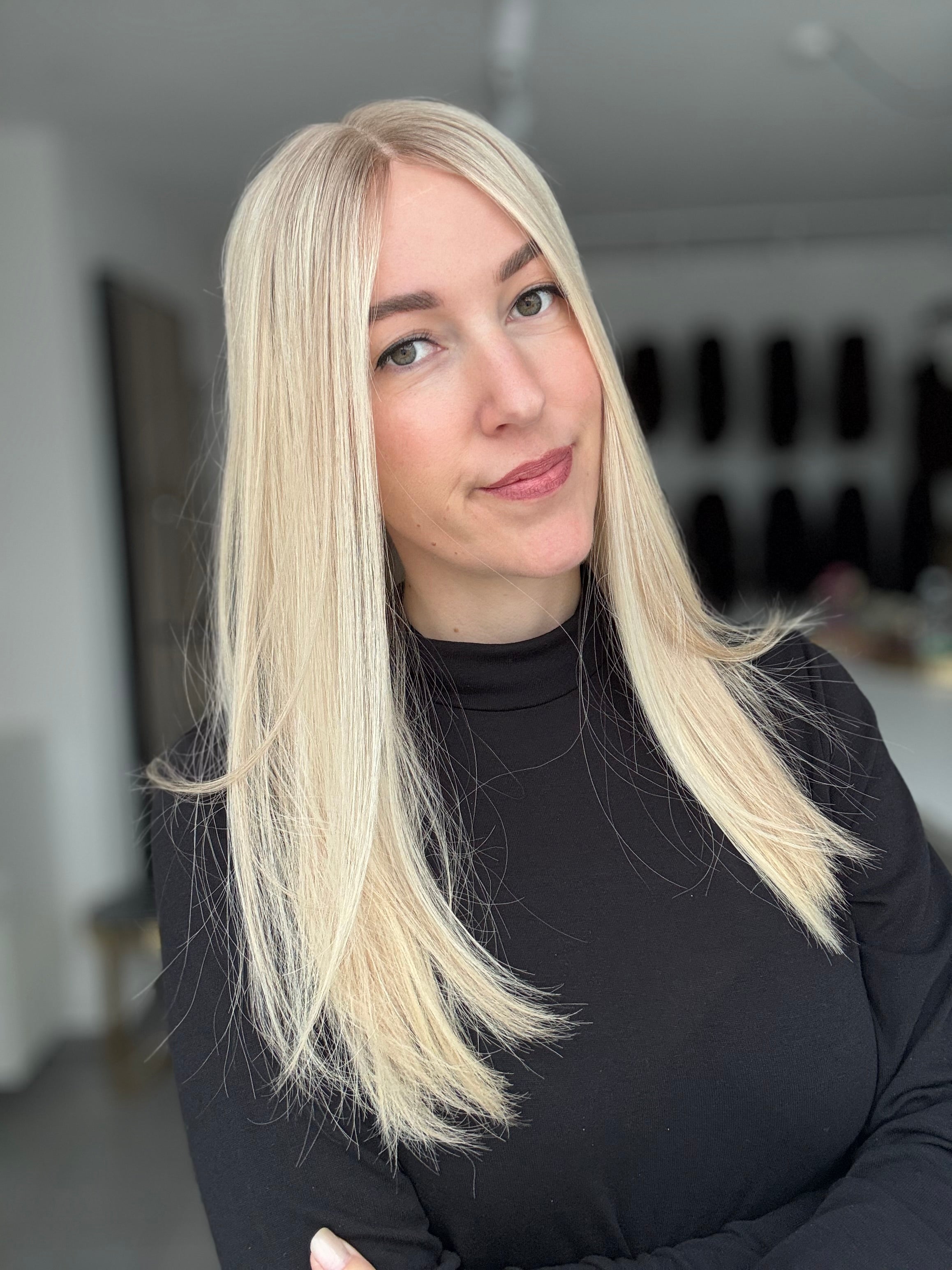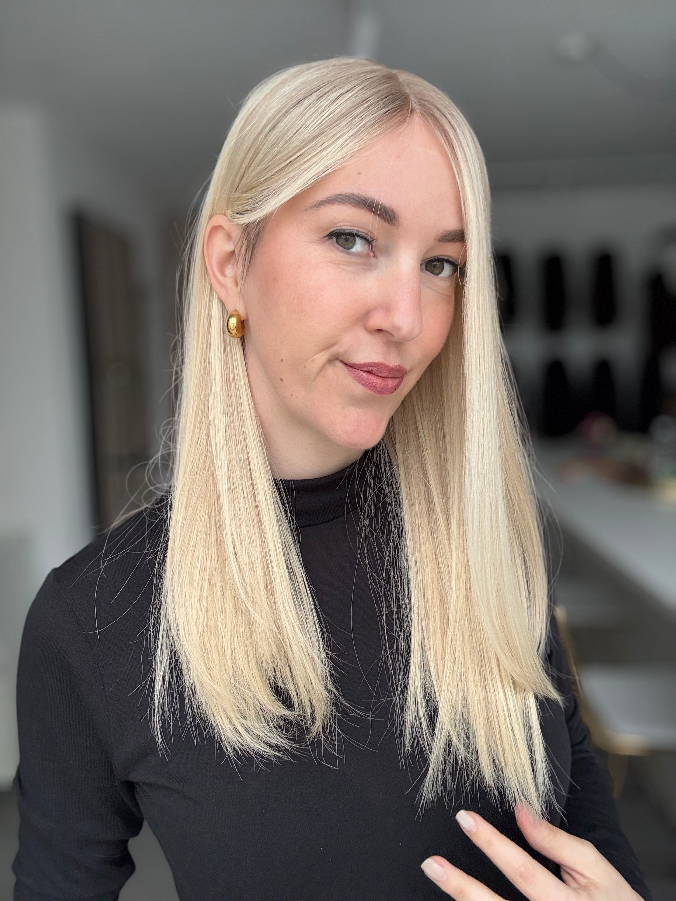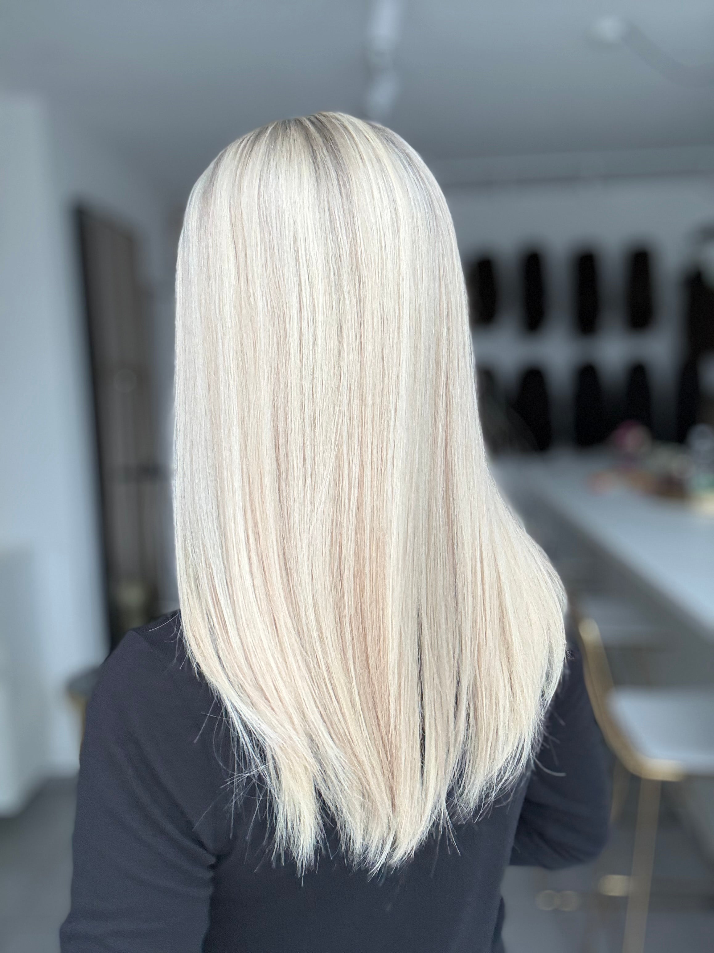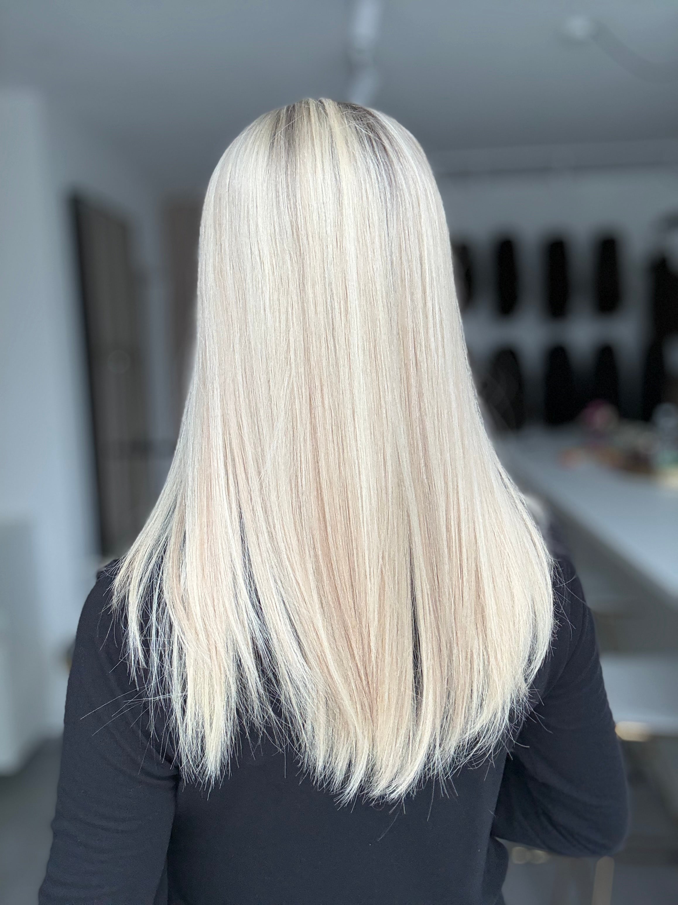 - Farbe: Eisblond mit leichtem Shadowrooting