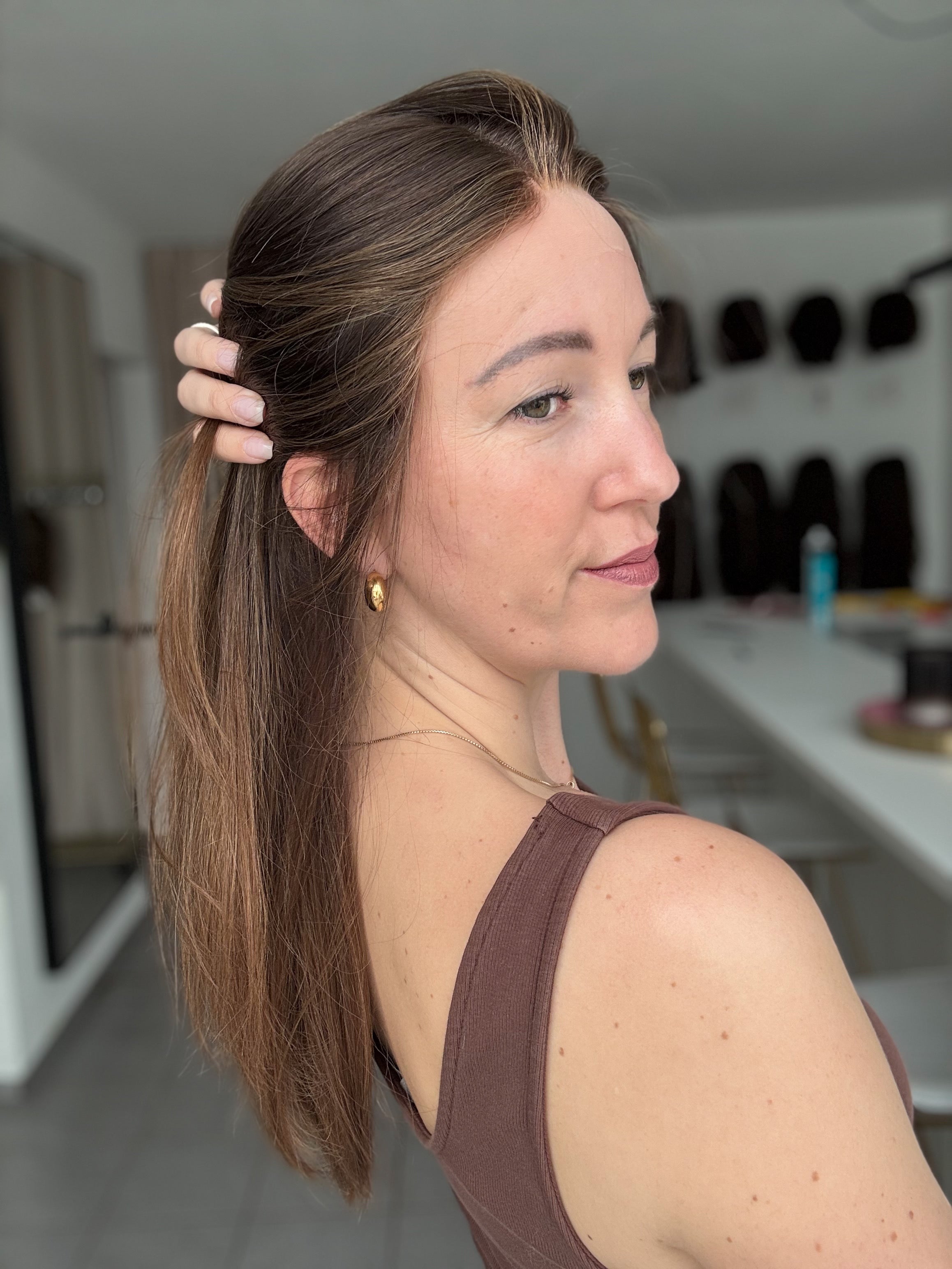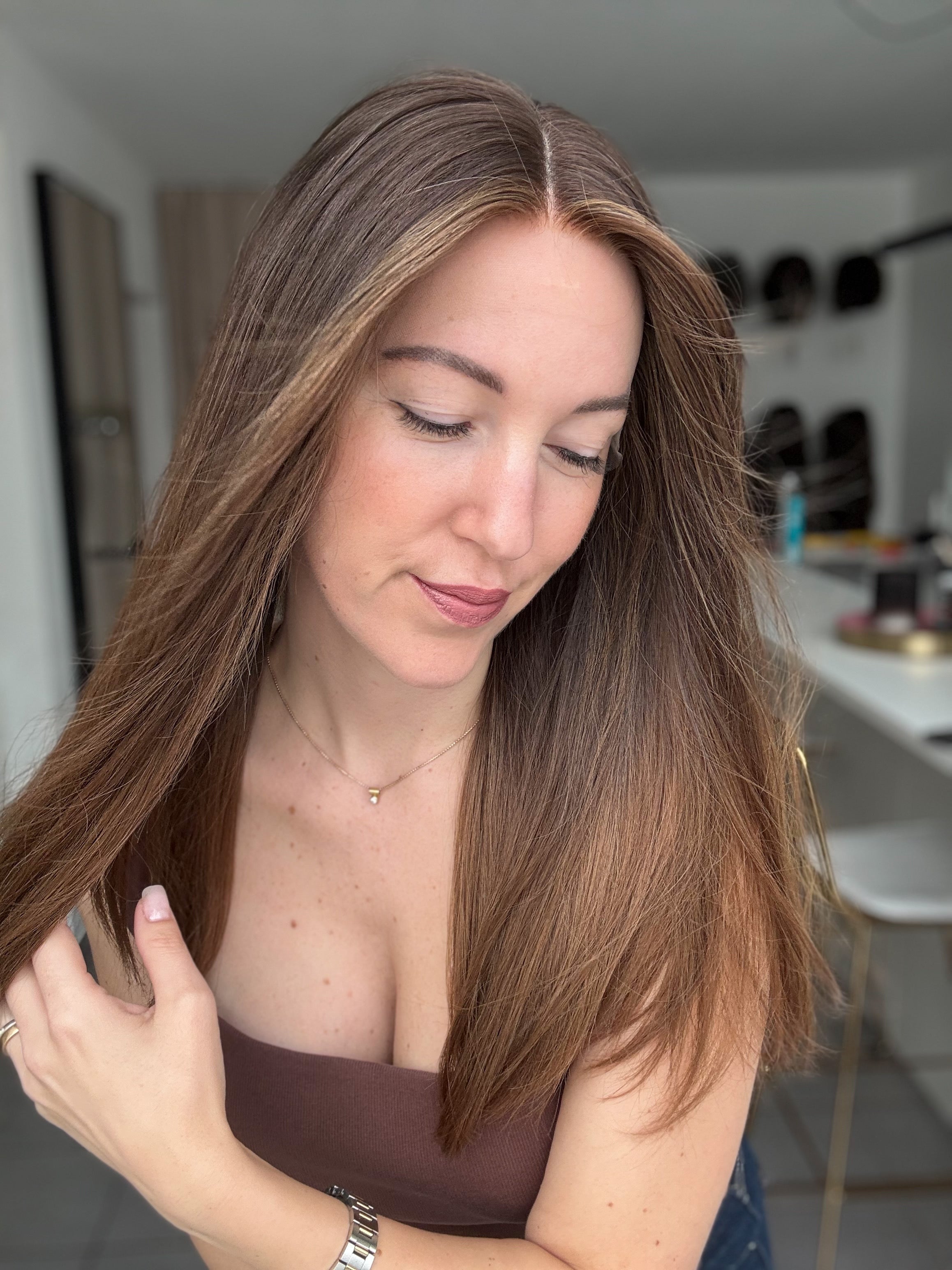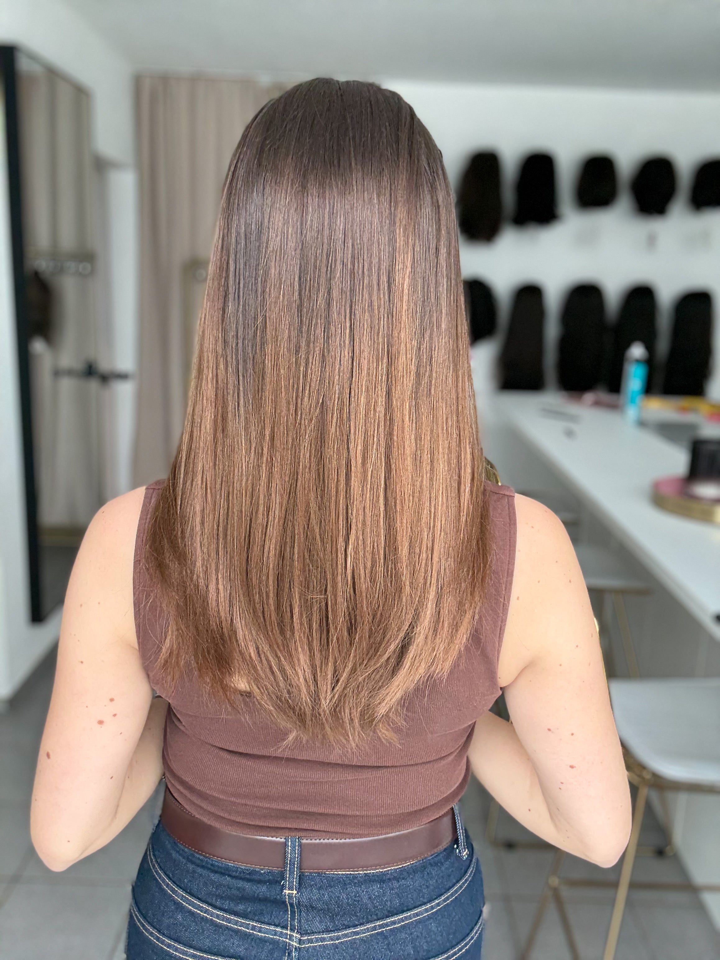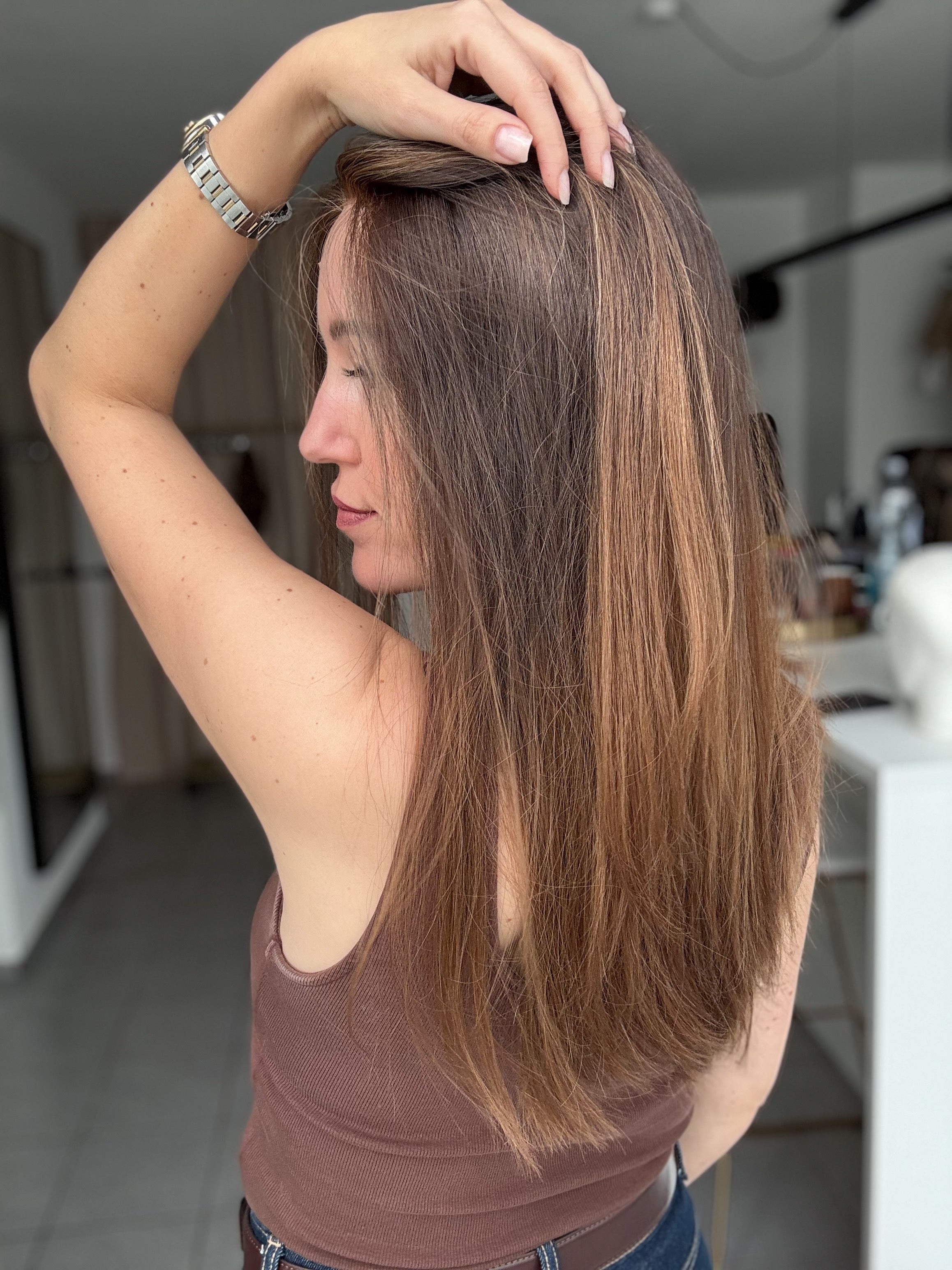 - Farbe: Aschiges Braun im Ombreverlauf zu wärmerem Haselnussbraun