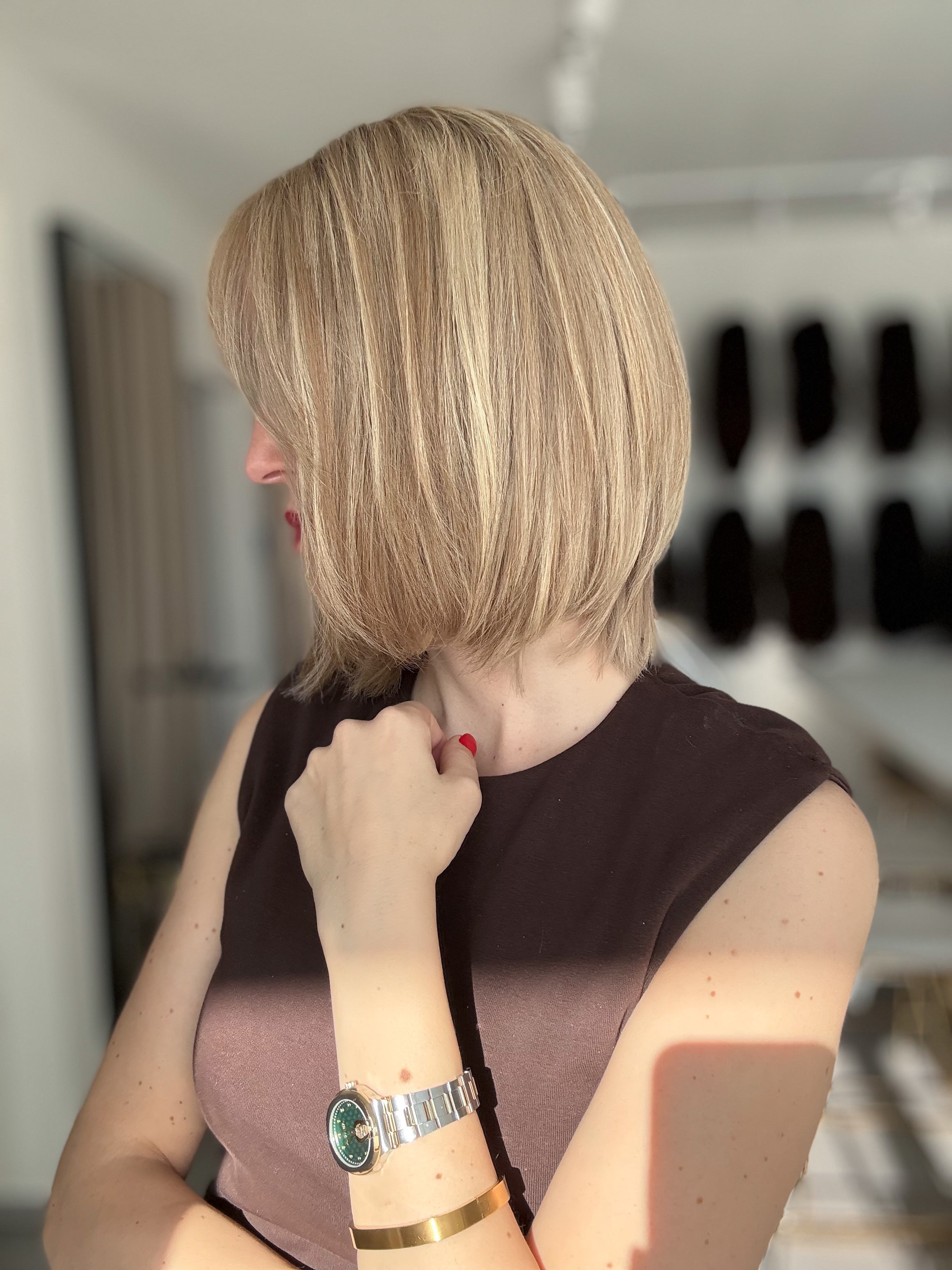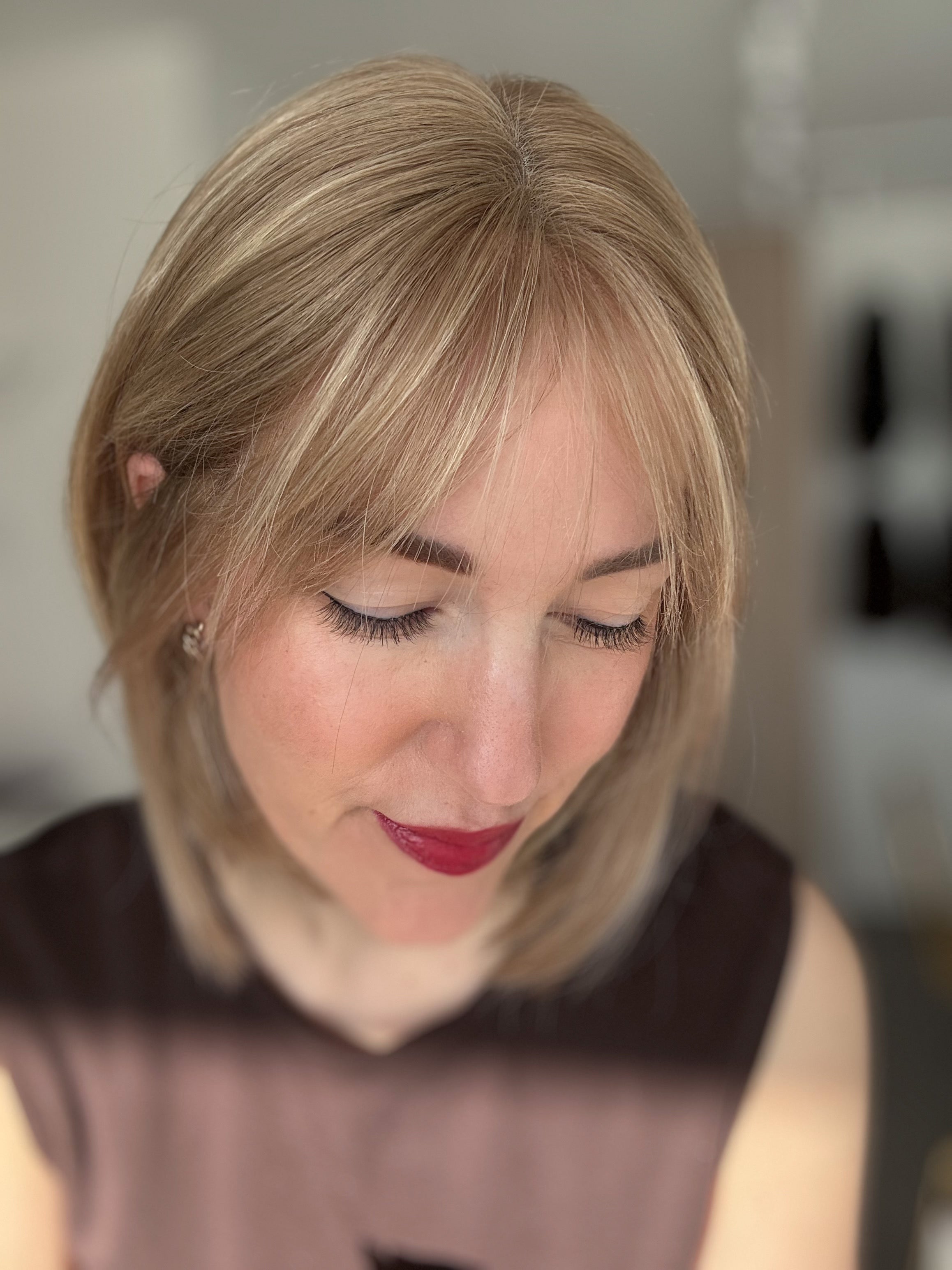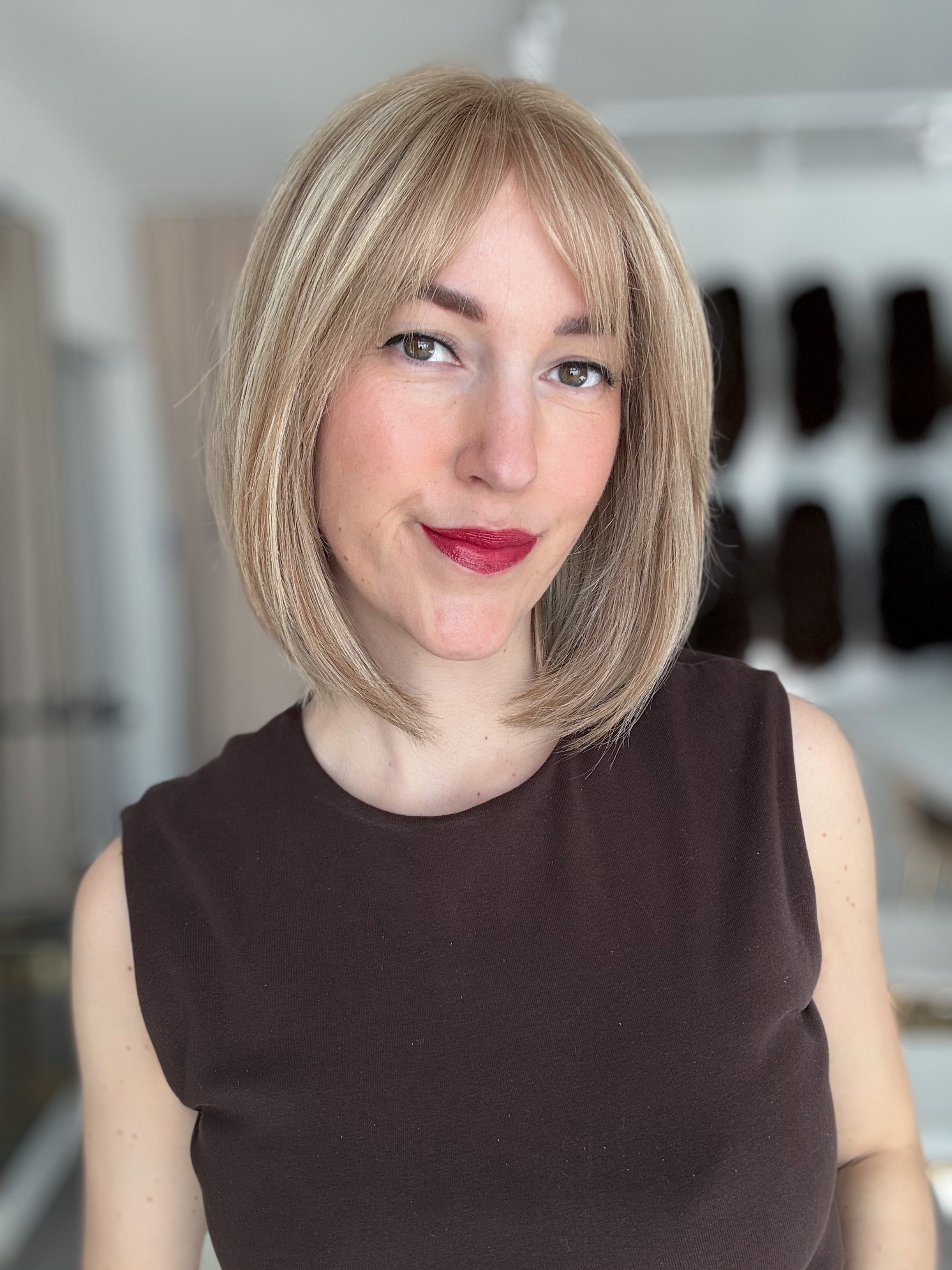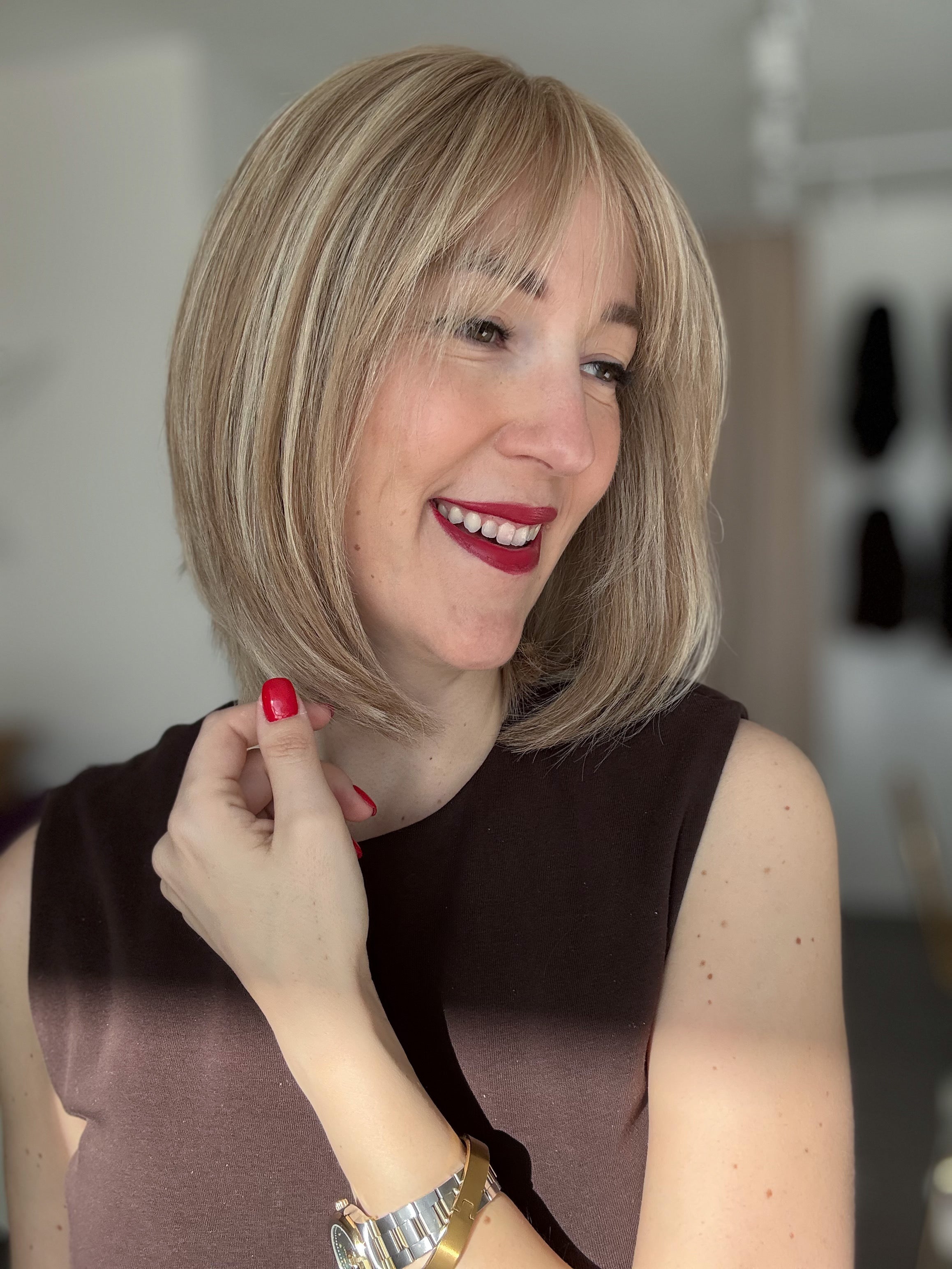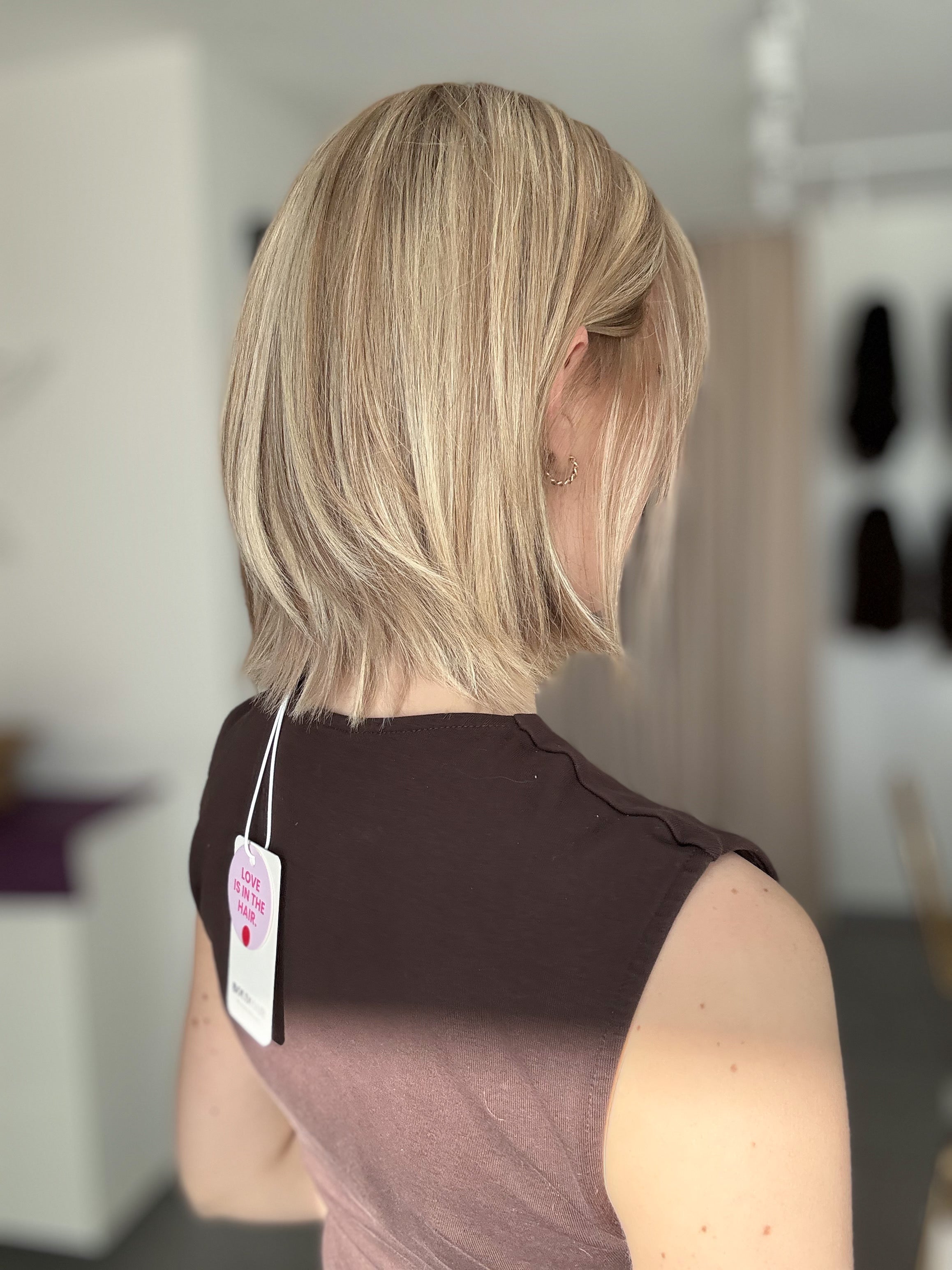 - Schnitt: leicht angestuft, feine Ponyfransen