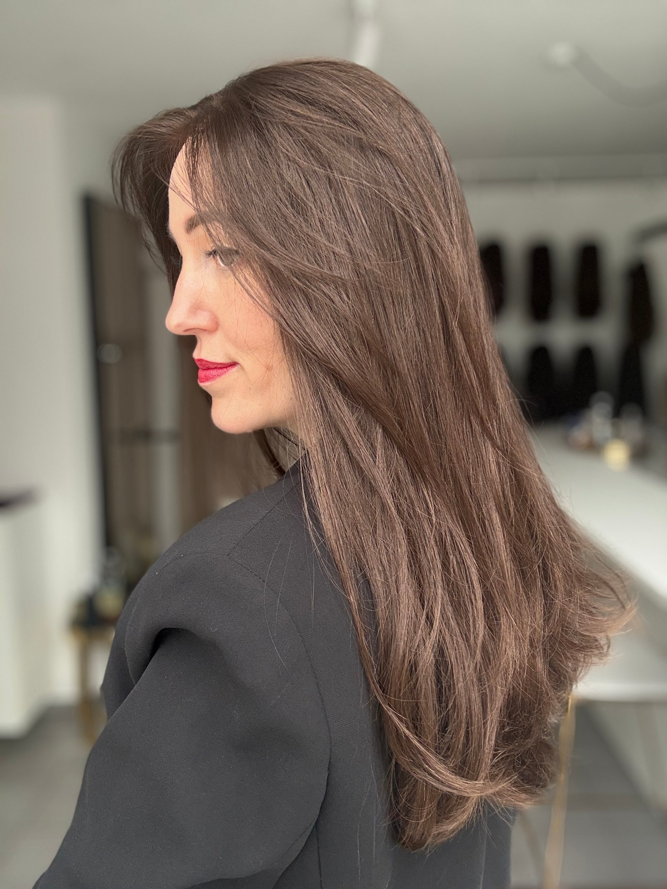 Die luxuriösen slawischen unbehandelten Echthaare sind wunderbar weich, dünn und leichter in der Textur. Qualitativ ist es das absolut beste und hochwertigste Haar auf dem Markt und stammt fein selektiert aus Osteuropa (Weissrussland, Russland und Ukraine). Im Vergleich zum Brazilian Hair, das eher eine perfekt glatte Textur hat, in der sich auch Wellen und Locken wahnsinnig lange halten, hat das slawische Haar einen natürlich leichten Frizz wie Babyhaar und fühlt sich insgesamt noch luftiger und feiner an.